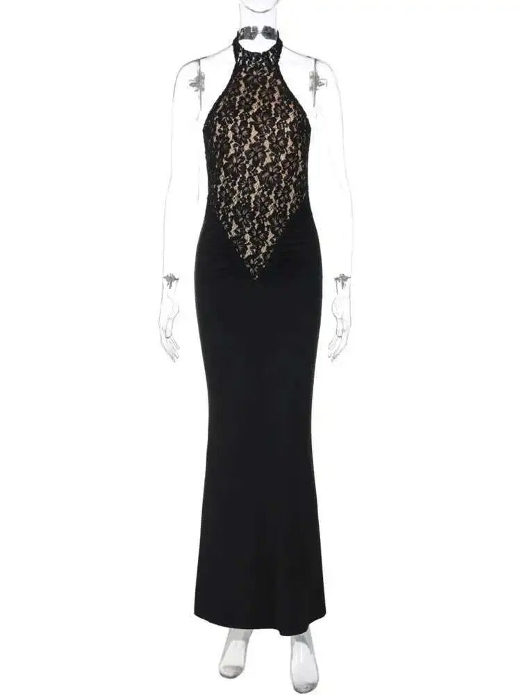 Vous êtes à la recherche de la parfaite petite robe noire ? Ne cherchez pas plus loin que cette robe sexy en dentelle noire. Cette magnifique robe est fabriquée dans un délicat tissu en dentelle noire et présente une silhouette ajustée et évasée qui ne manquera pas de flatter votre silhouette. Le col rond et le style débardeur sans manches rendent cette robe à la fois confortable et sexy, tandis que la jupe longueur plancher avec bordure en dentelle ajoute une touche de glamour.